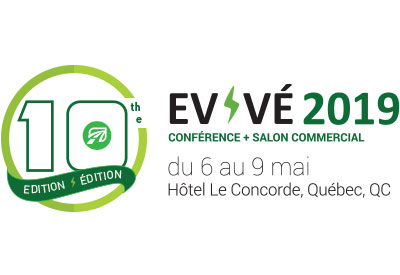 Mobilité électrique Canada (MÉC) vous invite à son 10e événement national à Québec du 6 au 9 mai 2019. Vitrine pour tous les modes de transport électriques terrestres, la Conférence et le Salon Commercial EV/VÉ constituent l’événement le plus important et le plus respecté de l’industrie canadienne du VÉ. EV2019VÉ est fier d’annoncer le thème de cette année : « La mobilité intelligente est électrique ».
