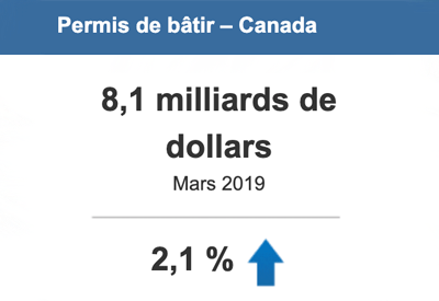 En mars, la valeur des permis de bâtir délivrés par les municipalités canadiennes s’est établie à 8,1 milliards de dollars, en hausse de 2,1 % par rapport à février. Cette hausse était attribuable à l’accroissement des intentions de construction dans l’Ouest canadien.