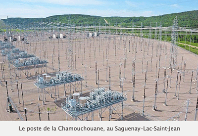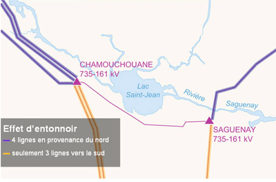 - la ligne de transport à 735 kV de 420 km de longueur qui relie le poste de la Chamouchouane, situé à La Doré au Saguenay–Lac-Saint-Jean, à la boucle métropolitaine de Montréal ;