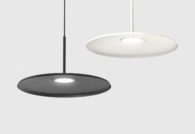 Echo est disponible en options de montage sur pavillon ou sur rail et en finis standard noir ou blanc finement texturés. La suspension est offerte en CCT de 3000K qui produit un rendement de 190 lumens et en CCT de 4000K qui produit en rendement de 156 lumens.