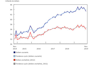 La baisse de novembre est attribuable aux ventes plus faibles dans cinq des sept sous-secteurs