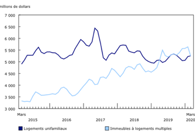 Investissement en construction de bâtiments, mars 2020