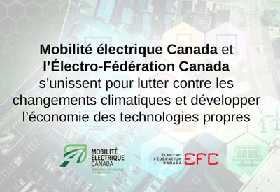 Mobilité électrique Canada et l’Électro-Fédération Canada s’unissent pour lutter contre les changements climatiques et développer l’économie des technologies propres