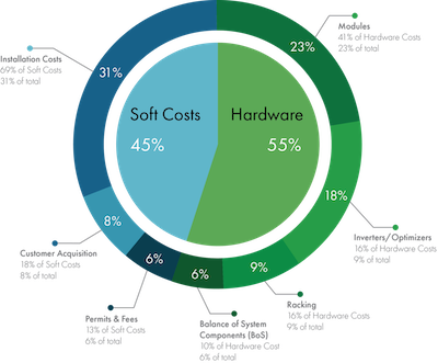Les résultats indiquent que le matériel ne représente que 55 % du coût total payé par les consommateurs néo-écossais, le 45 % restant se composant des coûts accessoires (liés aux processus et à l’administration entourant les permis, les inspections et le financement).