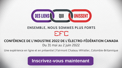 Des opportunités de parrainage sont toujours disponibles ! Contactez Nathalie Lajoie nlajoie@electrofed.com pour plus d’informationsInscrivez-vous maintenant | Visitez la page web de la conférence | Réserver une réunion du siège social | Télécharger le guide du programme