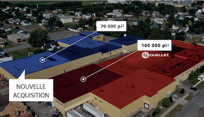 Cette nouvelle acquisition de 70 000 pi2, adjacente à Ouellet Canada, représente une augmentation de plus de 50% de l’espace manufacturière. De plus, cet