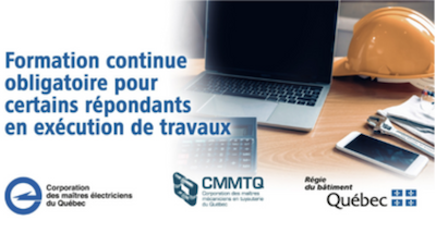 Déterminées à s’assurer que les entrepreneurs en construction demeurent adéquatement qualifiés pour garantir une construction innovante et de qualité, la Régie du bâtiment du Québec (RBQ), la Corporation des maîtres mécaniciens en tuyauterie du Québec (CMMTQ) et la Corporation des maîtres électriciens du Québec (CMEQ) lancent la formation continue obligatoire (FCO).