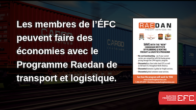 Le programme logistique de l’ÉFC, par l’intermédiaire de Raedan Freight Services inc. offre aux membres de l’ÉFC la possibilité de faire appel à plusieurs transporteurs pour obtenir la solution de transport la plus rentable. Les membres économisent ainsi entre 8 et 32 % sur leurs frais de transport.