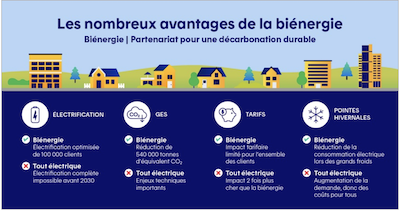La transition énergétique et la réduction des GES représentent un immense défi et des coûts importants pour la société. Elles entraîneront une hausse de la demande d’électricité, de sorte que le prix de cette ressource qui augmentera, particulièrement lors des périodes de pointe pendant les grands froids de l’hiver. L’initiative innovante d’Hydro-Québec et d’Énergir constitue donc une solution pragmatique pour réduire rapidement les émissions de GES tout en minimisant les impacts tarifaires pour la clientèle des deux distributeurs.