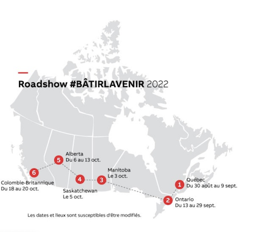Le roadshow #Bâtirlavenir prend la route au cours des quatre prohains mois et sillonnera le Nouveau-Brunswick, le Québec, l’Ontario, l’Alberta et la Colombie-Britannique.