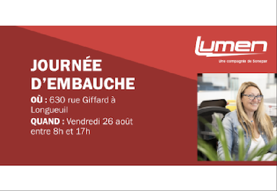 Lumen vous accueillera le 26 août entre 8h et 17h à sa succursale de LONGUEUIL.