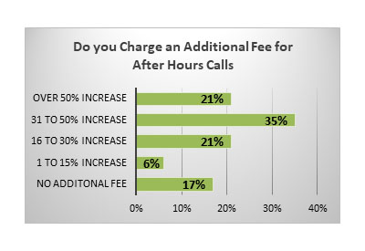 La préoccupation entourant les frais à facturer ou non pour le travail après les heures normales de travail a toujours été un point ambigu puisque la plupart des entreprises les facturent, mais il n’est pas rare de voir une entreprise annoncer qu’elle ne facture aucun frais supplémentaire pour les heures additionnelles. Cela contribue-t-il à une augmentation des appels qui contrebalancent l’absence de frais additionnels ? Encore une fois, des considérations géographiques peuvent être envisagées, mais lorsqu’on examine la tendance générale des entreprises, il est peu probable qu’il y ait suffisamment d’affaires générées par cette approche pour compenser l’absence de frais après les heures normales de travail. Les appels après les heures de travail peuvent avoir une importance considérable et les frais supplémentaires devraient constituer une partie importante de l’établissement des coûts pour le travail effectué durant les appels d’urgence.