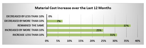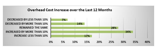 Enfin, nous avons demandé aux répondants d’indiquer comment les coûts des matériaux, de la main-d’œuvre et des frais généraux avaient été touchés par les tendances de l’industrie au cours des 12 derniers mois.