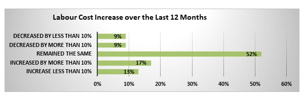 Il est intéressant de noter que 52 % des répondants ont indiqué que leurs coûts pour la main d’oeuvre n’avaient pas augmenté. Cela est d’autant