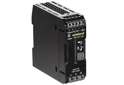 Les alimentations à découpage Wipos PS1 de Wieland possèdent une tension nominale de 24 V CC / 1,25 A (plage de réglage 21,6-27,6 V CC) et une plage de tension d’entrée de 85-264 V AC / 90-350V DC. En outre, elles offrent une protection contre les courts-circuits.