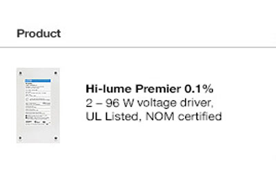 Le conducteur DEL à tension constante Hi-lume Premier 0.1% offre une performance supérieure et est facile à installer. Il est le premier conducteur au monde à offrir une gradation de 0,1% sans scintillement et une fonction « Soft-on, Fade-to-Black » pour une expérience de gradation similaire qu’avec les incandescents.