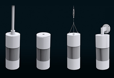Cylinder One propose plusieurs réflecteurs à modification rapide, ainsi que diverses configurations de montage, telles que le montage en surface, le montage suspendu NPS 3/4”, le montage sur câble suspendu et le montage mural.