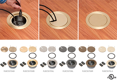 Les kits de couverture encastrée de la série FLBC5570 d’Arlington sont livrés avec deux réceptacles installés, en acier ultra mince et des couvercles avec indication d’utilisation ou non. Pas de prises basse tension dans ces couvercles.