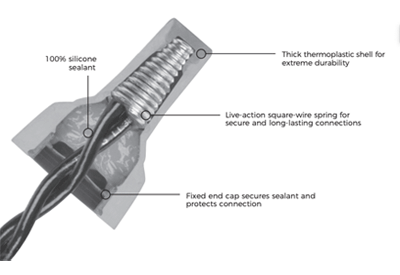 Performance : Chaque connecteur est pré-rempli avec un scellant 100% silicone longue durée qui protège vos connexions électriques des environnements les plus sévères.