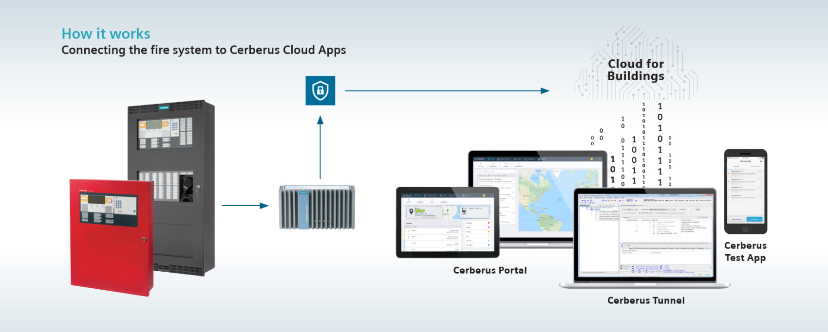 Cerberus Tunnel – Permet aux fournisseurs de services de résoudre les problèmes à distance grâce à une connexion en direct au système de protection incendie. Aide les fournisseurs de services et les utilisateurs à numériser l’offre de services pour diminuer les coûts, réduire les besoins en déplacements et améliorer l’efficacité des services.