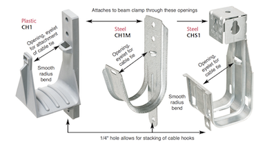 Crochets de câble en acier robuste d’Arlington pour câble de communication ont un indice de support de 25 lb et peuvent prendre en charge jusqu’à 90 câbles Cat 5e.