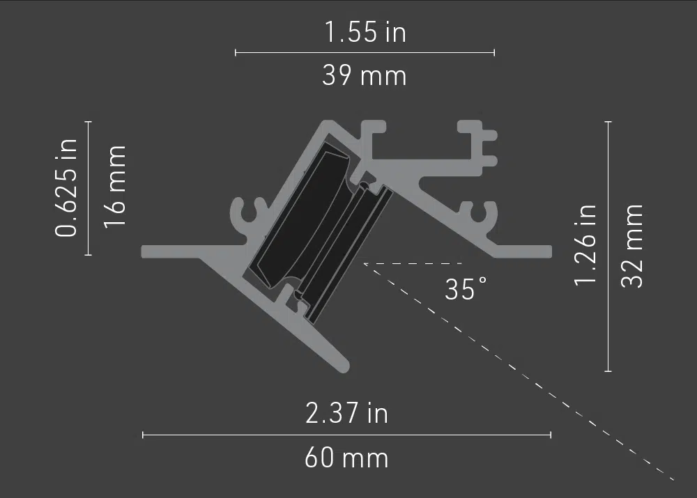 Le 1590 Optilux Pro procure un éclairage puissant et direct, vous permettant de diriger la lumière à l’endroit voulu : sur une surface de travail, sur une texture que l’on souhaite rehausser ou pour donner créer un effet lèche-mur. Trois couleurs sont offertes pour le fini des lumières DEL : noir, blanc et or. Conçu pour un éclairage d’intérieur, c’est le profilé parfait pour le bureau, une boutique ou pour mettre en valeur un éclairage mural.
