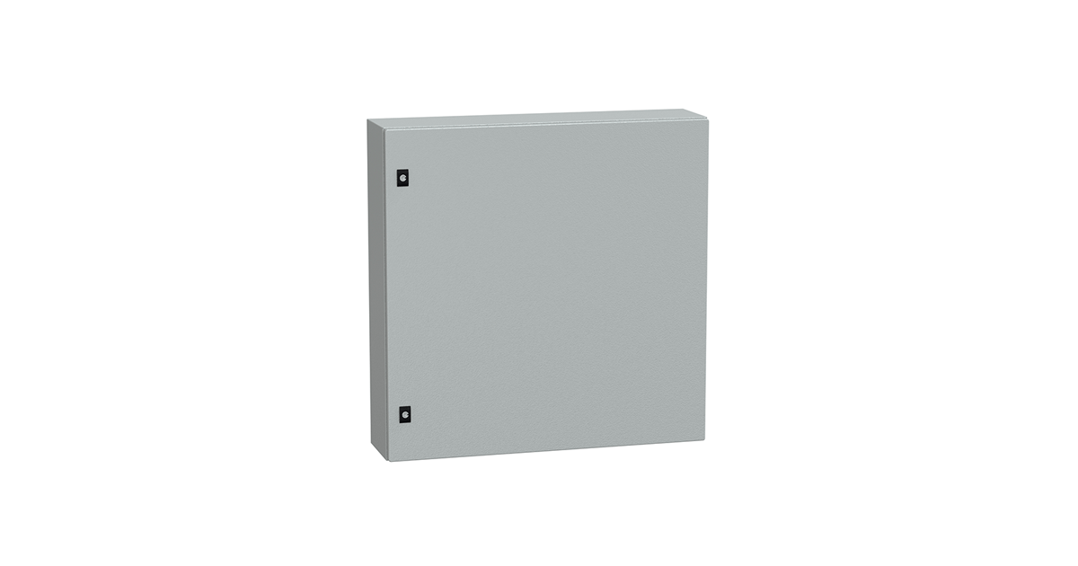 PanelSeT CRN est un boîtier multi-usage à montage mural en acier conçue pour être utilisée dans des environnements difficiles. Certifié UL, cUL et DNV-GL, il est conforme aux normes IK10 (CEI62262) et IP66 (CEI60529), ce qui le rend très résistant à la poussière et à l’eau. Ce boîtier a une hauteur, une largeur et une profondeur nominales de 800 mm, 800 mm et 200 mm, respectivement. Le boîtier est de couleur grise (RAL7035) avec une finition de surface en poudre époxy-polyester. Le boîtier se compose d’un corps, d’une porte pleine avec une serrure à trois points et un insert à double barre de 3 mm, d’une plaque de montage et de deux plaques passe-câbles en bas. La porte peut être ouverte jusqu’à 120°, ce qui permet un accès facile à l’équipement à l’intérieur. Il est possible de changer le côté d’ouverture de la porte (réversible). La porte, la plaque passe-câbles et la plaque de montage peuvent être retirées à des fins de maintenance. Le poids net de le boîtier est de 33 kg. Cette variante présente des côtés réalisés à partir d’une seule section pliée et d’une soudure à double profil formant une zone étanche protégée. L’accessibilité pour le fonctionnement se fait par l’avant. Ce boîtier compacte est certifiée c.UL.