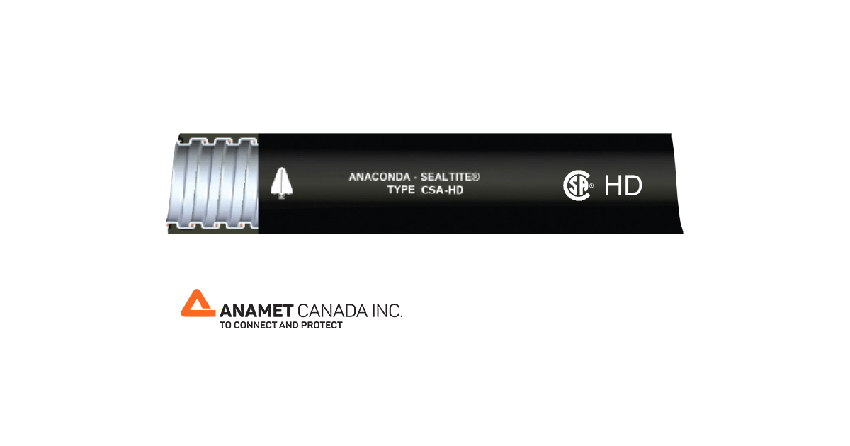 Sealtite CSA-HD est la norme canadienne pour les conduits flexibles étanches aux liquides destinés à des applications dont la température varie de -20 °C à +75 °C (-4 °F à + 167 °F). Ce conduit CSA-HD est résistant aux UV et à la corrosion et peut être enterré directement. Utiliser avec les raccords HD ANAMET certifiés CSA. Fabriqué au Canada.