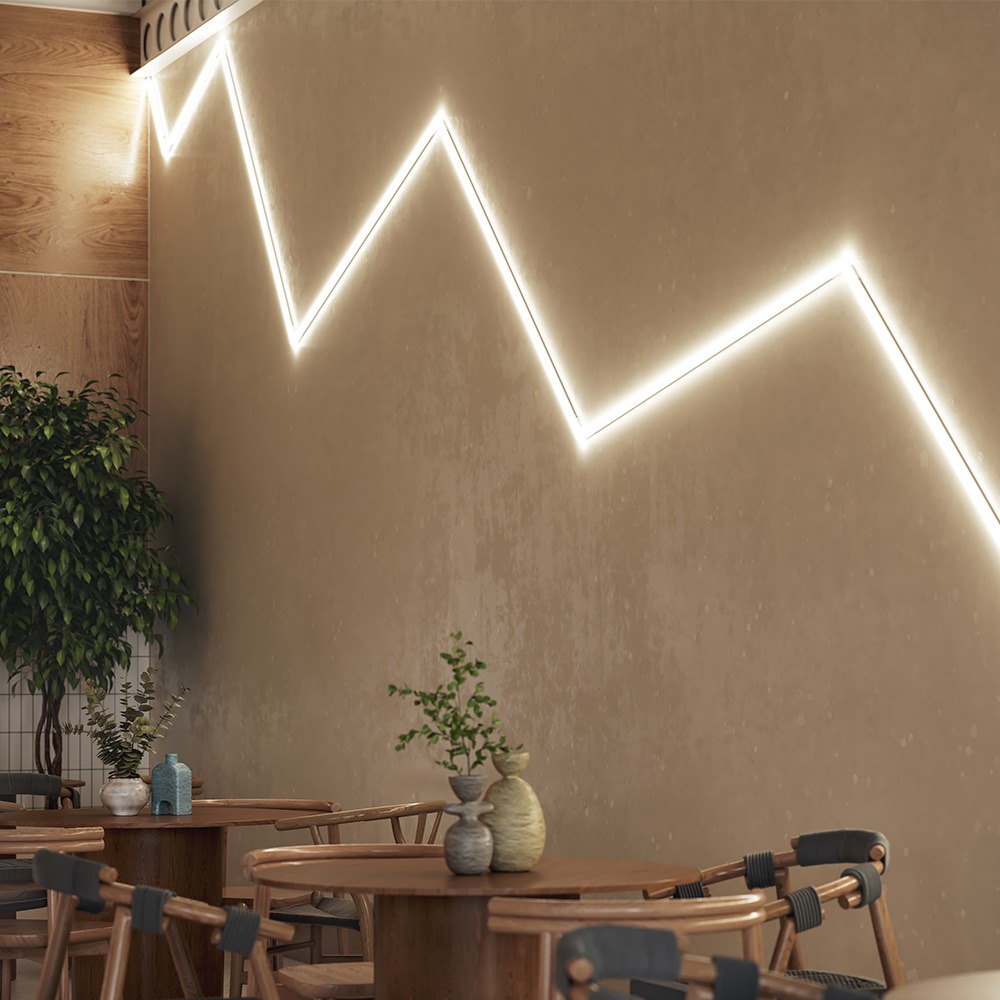 - Le connecteur vertical (90) et le connecteur angulaire (80° – 280°) émettent une lumière qui assure un éclairage continu et homogène.