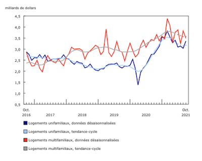 La valeur des permis de bâtir de logements multifamiliaux a diminué de 8,8 % à l’échelle nationale, après avoir connu un mois de septembre vigoureux, surtout en raison du moins grand nombre de permis de grande valeur délivrés en Ontario et en Colombie-Britannique.