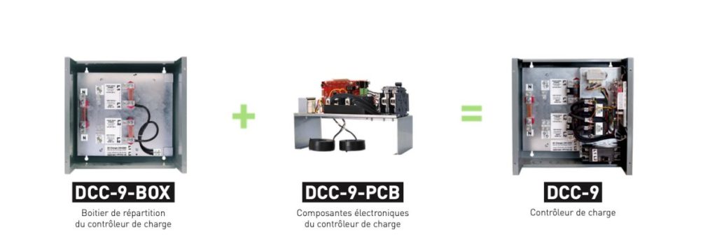 Afin de préparer un immeuble pour le futur, il est possible d’installer seulement le DCC-9-BOX, qui est un boîtier de répartition spécialement conçu pour préparer un immeuble à l’arrivée des véhicules électriques à moindre coût. Il permet d’effectuer le branchement de l’alimentation principale et de l’alimentation de la borne de recharge en réduisant le coût initial d’installation et sans affecter le calcul de charge.