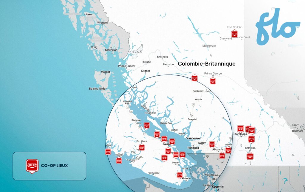 Les bornes de recharge FLO seront installées dans les points de vente des coopératives à partir de cet été. Une fois entièrement déployées, les bornes étendront la recharge rapide aux sites urbains et ruraux, ce qui permettra d’accroître l’accès à la recharge rapide dans toute la province et contribuera à la réalisation des objectifs de réduction des émissions de la Colombie-Britannique.